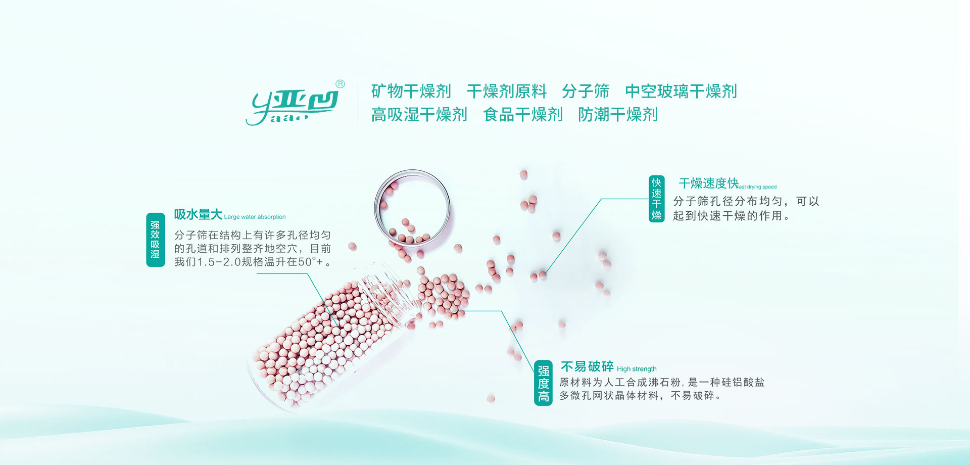2010年,公司確立剝離非核心業務,專門從事中空玻璃分子篩的研發、生產和銷售,公司現主營產品包括中空玻璃干燥劑,百葉中空玻璃干燥劑,食用油脫色劑,汽車剎車干燥劑等,產品廣泛應用于玻璃制品、汽車零部件、鞋帽、服裝、箱包、食品等行業,具有無毒、無味、無腐蝕性、性能穩定、綠色環保、吸附性強等特點。